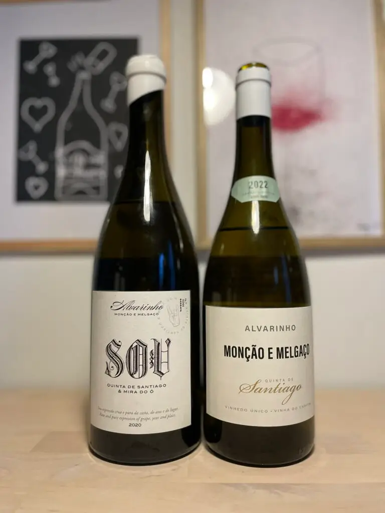 Vi er i underzonen Monçao e Melgaço i den forkætrede appellation Vinho Verde i det nordligste Portugal på grænsen til Rias Baixas i Spanien. Og indsigtsfulde folk eller rettere opdaterede ved godt, at området i en del år efterhånden har været på vej gennem en lille revolution. Jeg kender faktisk ikke til eksempler på gammeldags vinho verde på det danske marked selvom det sandelig stadig produceres. Tynd sursød, let perlende vinho verde. Quinta de Santiago er med i elitekorpset af de nye seriøse Vinho Verde-producenter. Jeg har lige siddet med 8 fantastiske albariñoer fra Rias Baixas i glasset til testsmagning til gastro og så dukker den her op på mit bord tilfældigvis. Den taler jo portugisisk og ikke spansk. En citrongul vin, men som altid med alvarinho/albariño er der friskhed så man får helt kuldegysninger. Gul pære, vanilje og så den isnende syre med mild bitterhed som grape, der også er saltet. Jeg traf Joana Santiago for ca. 5 år siden og blev smaskforelsket i vinene. Hvor er jeg glad for at møde dem igen.